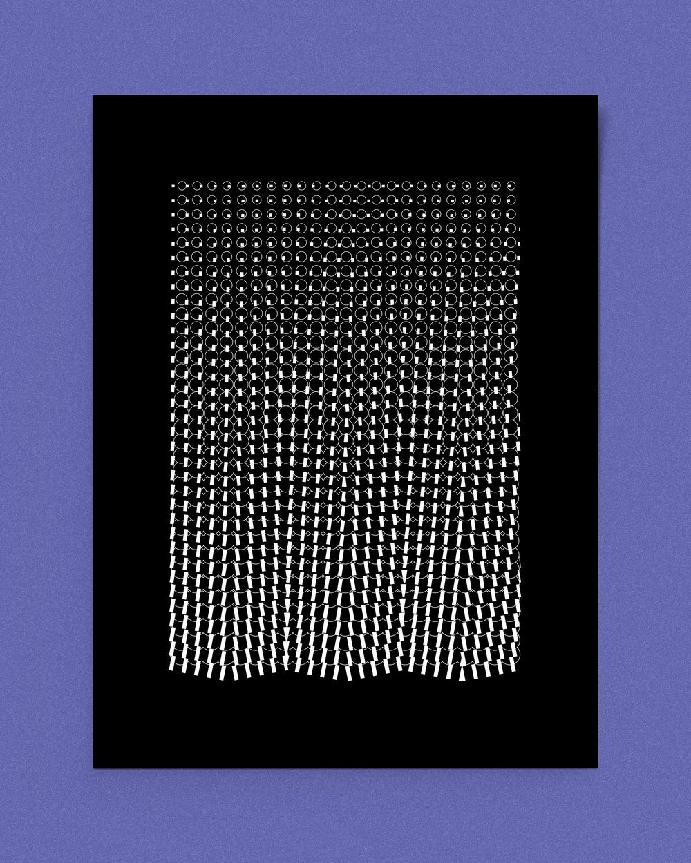 It is a smaller version of the same design, locally printed in a tiny printshop in Amsterdam. Printed on a 270 grams Hahnemuhle white velvet paper.
